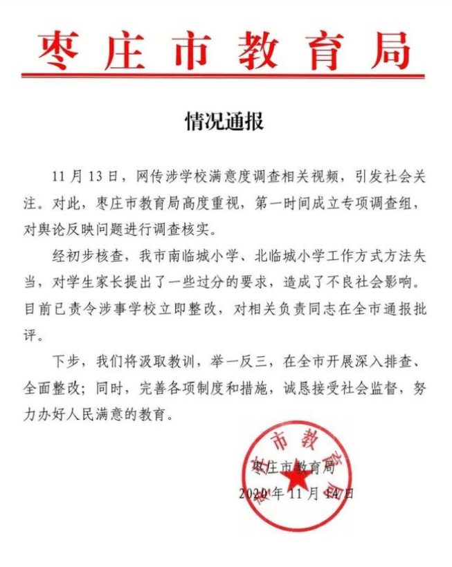 面对此次舆论危机,我们看一下枣庄市教育局的“情况通报”